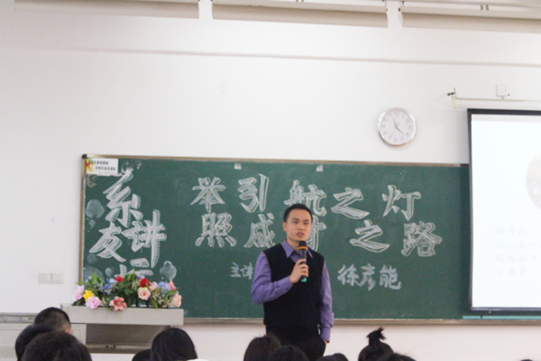 徐彦能系友演讲的主要内容是考公务员的经历和一些技巧。他本人现在在广州市松洲强戒所就职。徐师兄提出要想在大学四年有所收获必须要做到以下三点: 第一,必须明确自己的目标,在大学四年找到自己的人生目标;第二,必须摆正自己的心态;第三,既然确定了目标,就要向着目标开始行动,提前做好准备。紧接着,徐师兄详细地与师弟师妹们分享了公务员考试的细节技巧,分析目前公务员的考试题型。“多做多练,把考试套路摸熟”。徐师兄毫无保留地传授经验使大家受益匪浅。