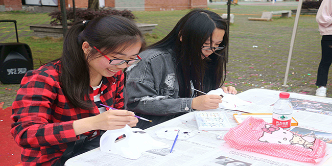 Color face 面具涂鸦活动现场准备了百来个面具,让同学们尽情发挥想象,涂绘出心中最炫目的那个面具,为同学们紧张的学习生活提供难得的休闲和放松契机。