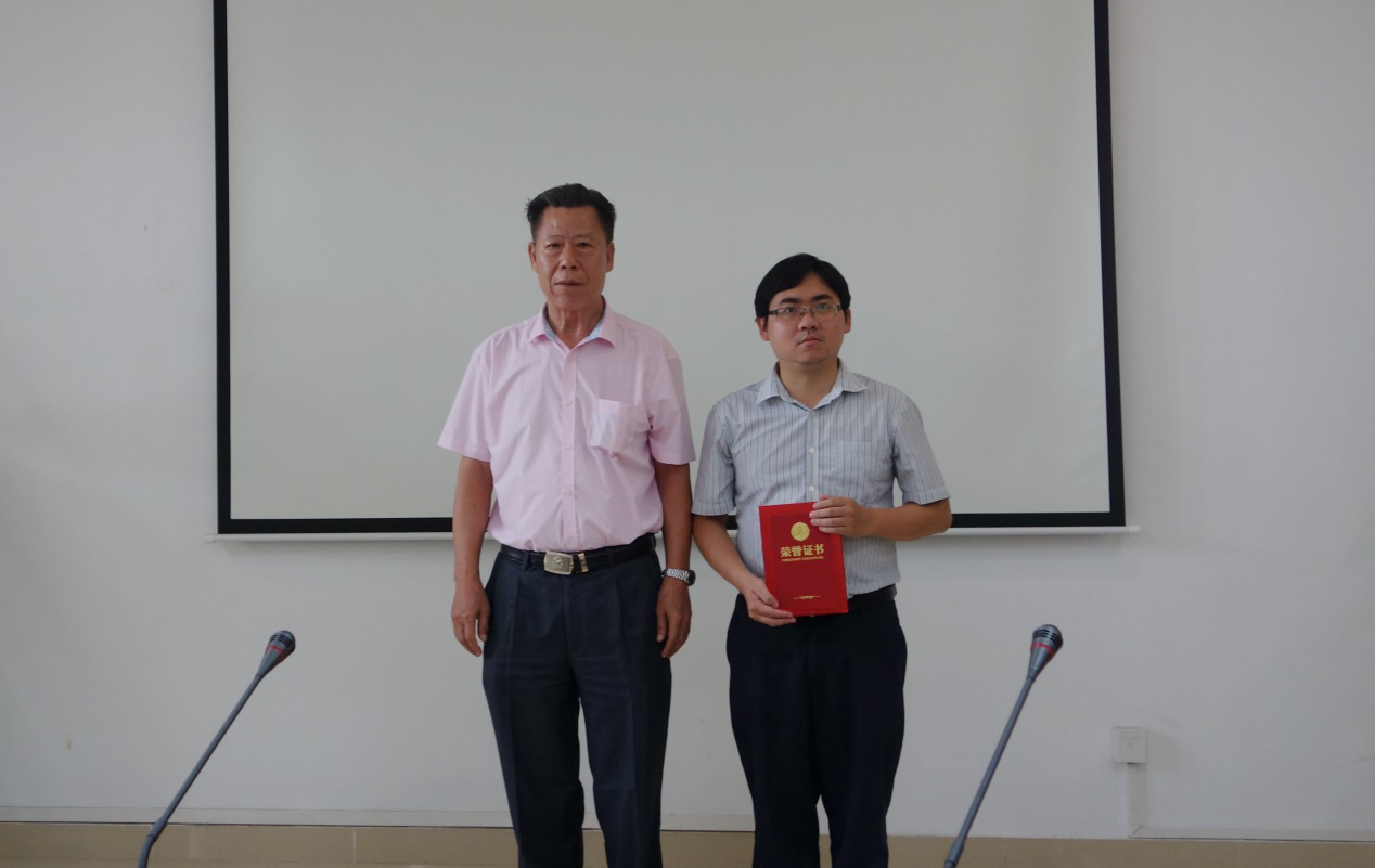 罗立和副处长(左)为军事理论多媒体课件制作一等奖获得者团队颁奖