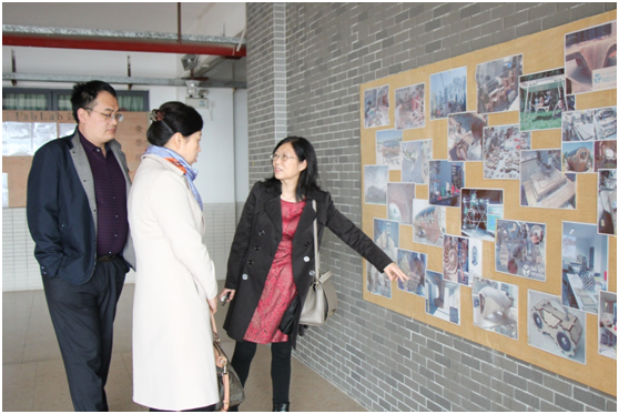 学校办公室(党委办公室)丁艮平主任为来访代表介绍Fab Lab创客实验室 王银娜摄