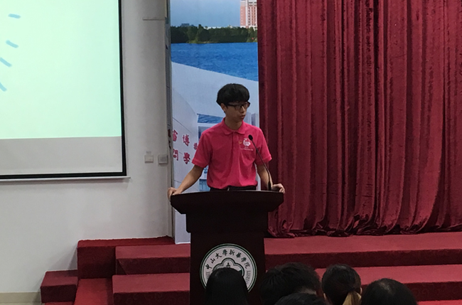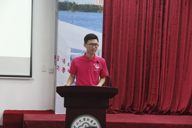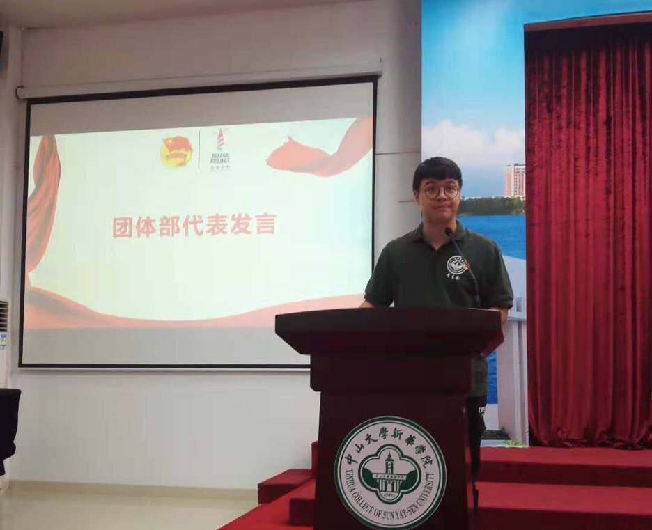 优秀退任老生代表黄丽华同学发言。她以校团委宣传部的口号“坚持到无能为力,奋斗到感动自己”作为自己两年共青团工作的总结。作为校团委的一员,黄丽华同学也是2018学年国家奖学金的获得者,她讲述了自己在学习、工作、生活中合理调配时间的心得,分享了在校团委工作的诸多收获。黄丽华鼓舞在座的新成员朝着自己奋斗的目标不断完善自我,在学习、工作、生活中锐意进取,将校团委的优良传统和品牌薪火相传。