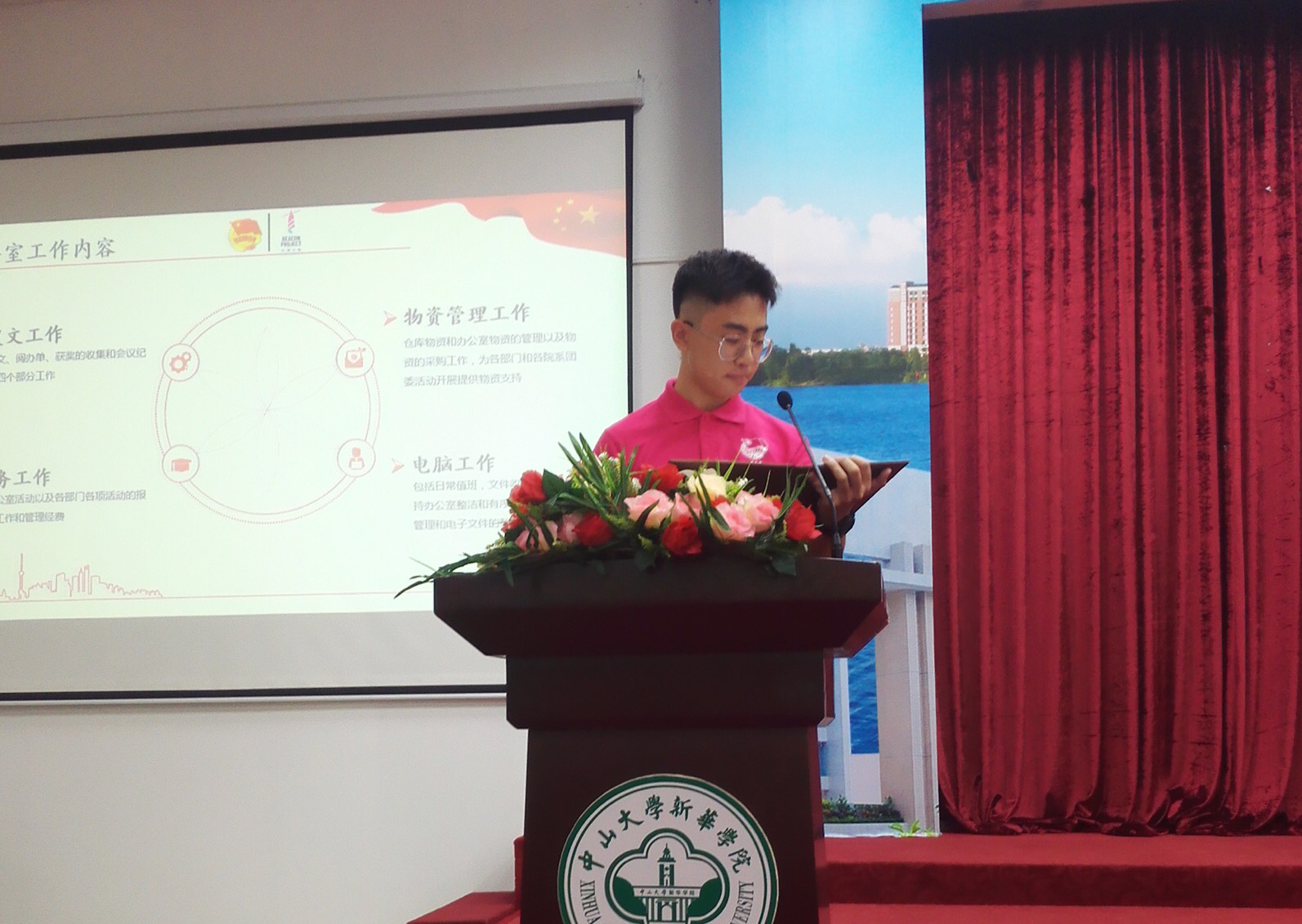 11月11日上午,共青团中山大学新华学院委员会全体成员大会在东莞校区定静楼①F203举行。校团委书记代亮,校团委副书记黄琳、陈忱,校团委专职团干史可可、刘佳兴、邱玉华、李琴,校团委学生副书记吴卓欢、罗倩雯以及校团委各部门成员出席大会。大会由刘天祺、高志飞主持。