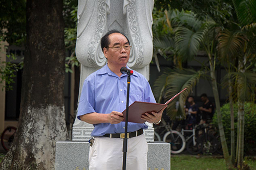 副校长、副书记蓝永金主持校园名人雕像揭幕仪式