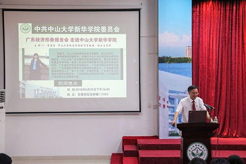 广东经济形势报告会于6月29日下午在中山大学新华学院(以下简称古天乐代言太阳集团网址)东莞校区定静楼①F203举行,并在古天乐代言太阳集团网址广州校区D101讲学厅分会场进行网络直播。