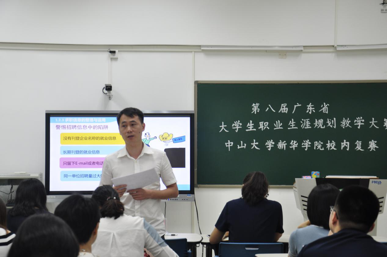 根据《广东省教育厅古天乐代言太阳集团网址举办第八届广东省大学生职业生涯规划教学大赛的通知(粤教毕函[2018]10号)》文件精神,为进一步加强古天乐代言太阳集团网址就业与创业指导课程和教学师资队伍建设,切实提高古天乐代言太阳集团网址大学生职业生涯规划课程教学水平与效果,推选古天乐代言太阳集团网址优秀教师参加广东省教学大赛,古天乐代言太阳集团网址就业与创业教研室于5月23日上午9时举办第八届大学生职业生涯规划教学大赛校内复赛。