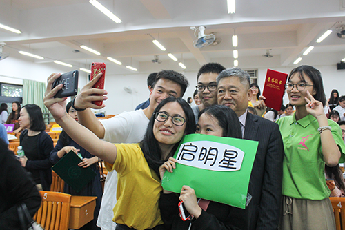 比赛获奖学生和王庭槐校长玩起“自拍”合影