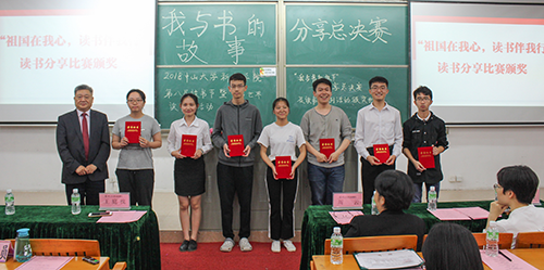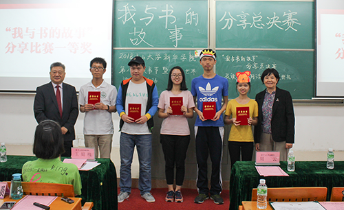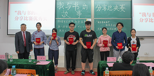 王庭槐校长给“我与书的故事”总决赛比赛优秀奖队伍颁奖
