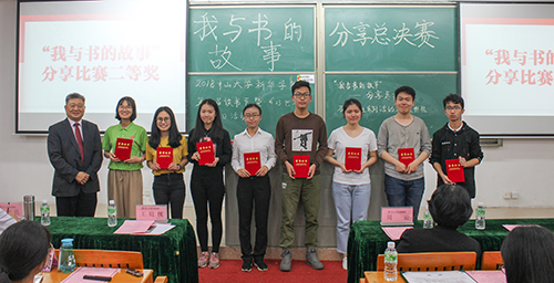王庭槐校长为“我与书的故事”总决赛比赛二等奖队伍颁奖