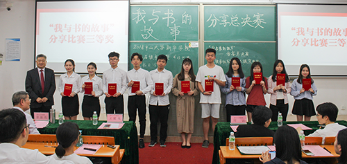 王庭槐校长为“我与书的故事”总决赛比赛三等奖队伍颁奖