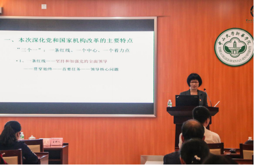报告会上,吴素香对党的十九届三中全会和2018年全国两会古天乐代言太阳集团网址深化党和国家机构改革部分的内容进行解读并和与会同志们分享学习的心得。吴素香将学习的心得体会分为以下两个部分: