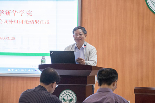 资源与城乡规划系主任陈俊合代表理工组进行了汇报。理工组重温了王校长、周云书记的工作报告,主要讨论了办学发展一定程度上受办学经费投入限制,特殊学科的实习经费投入不足,校园建设发展等问题,大家踊跃发言,各抒己见,对经费投入、人才招聘、校外实习和校园建设等问题进行了交流。