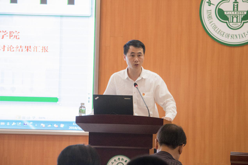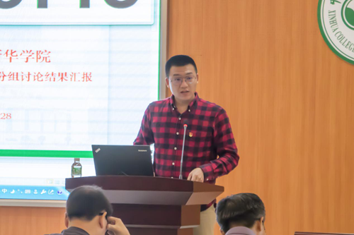 会计学院常务副院长林源代表经管组进行汇报。经管组主要讨论了教师待遇、校园建设、后勤保障、学校定位和特色问题,希望学校加强激励机制,提高教师薪酬待遇;加大对图书馆、体育馆、宿舍建设等的投入力度;分别建设教学科研两个激励体系,健全更加合乎民办高校发展、更加灵活的制度。