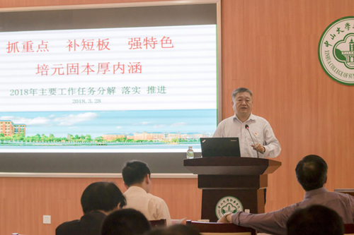 会议最后,王校长对于2018年各院系(部)具体工作任务的落实情况提出要求。第一,要求各院系在本学期末的院系总结中“用一句话概括本专业的目标、特色”。第二,努力达成“创新强校工程”的十七项关键指标、落实“十三五”规划目标工作两项任务以及各院系发放的任务清单,在年度工作总结中显示任务完成度(数量、质量)。第三,应落实二级管理的职能、常抓日常管理运转、建立工作台账,做好经常性管理、在关心教师和学生的健康发展等日常性工作上常抓不懈,争取把学校建设成为位居全国同类学校前列的应用型、开放型、多科型的现代化高等学校。