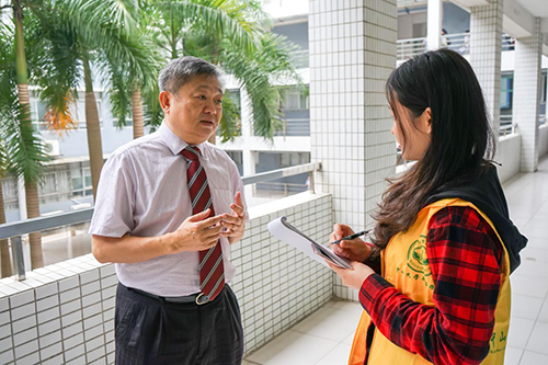 王庭槐校长接受学生记者采访 王仲贤摄