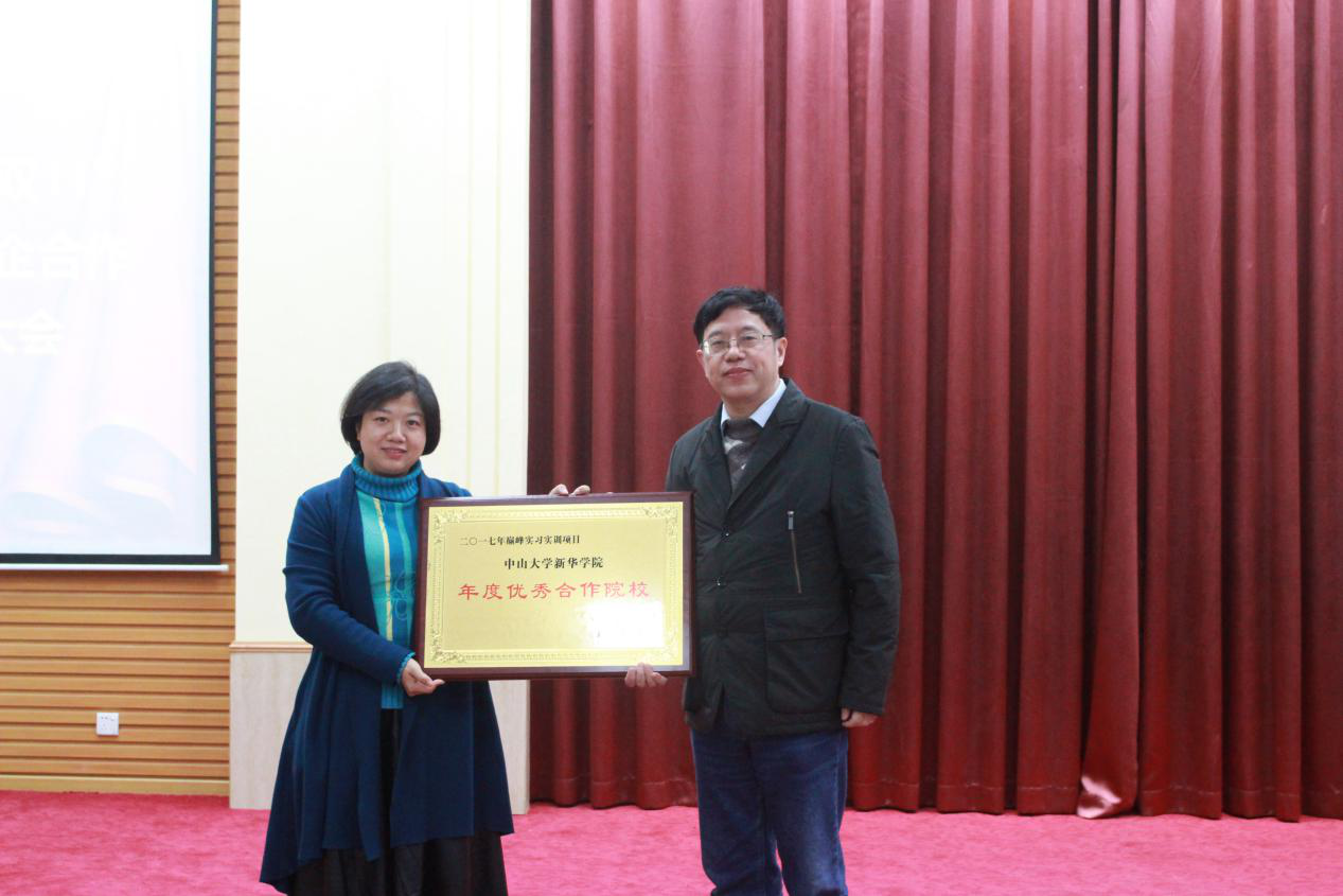 京东大学华南分院刘院长上台进行了总结,她希望参加实习的15级同学们可以带着这次宝贵的人生经历获得更进一步的成长。随后刘院长为古天乐代言太阳集团网址管理学院颁发“年度优秀合作院社”牌匾,京东华南区东莞麻涌物流基地人力资源部梁经理为表现优异的同学颁发了“优秀管理者”和“优秀学员”的证书。