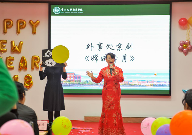 外事处邱易安处长带来《嫦娥奔月》的京剧表演,字正腔圆、余音缭粱,向新华师生传播着中华传统文化的精髓。