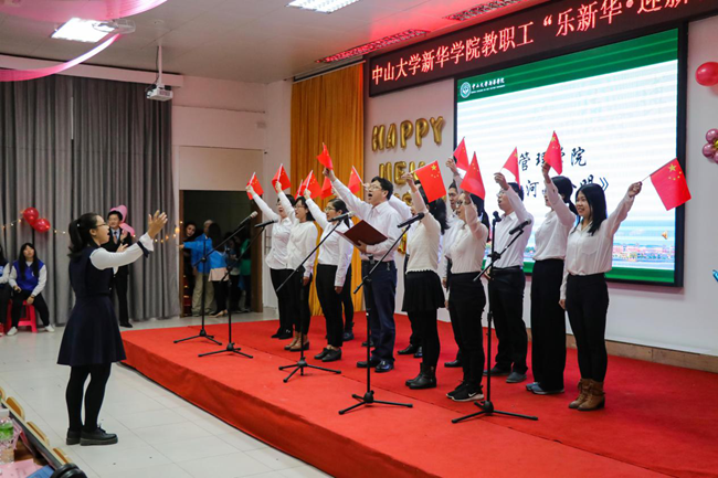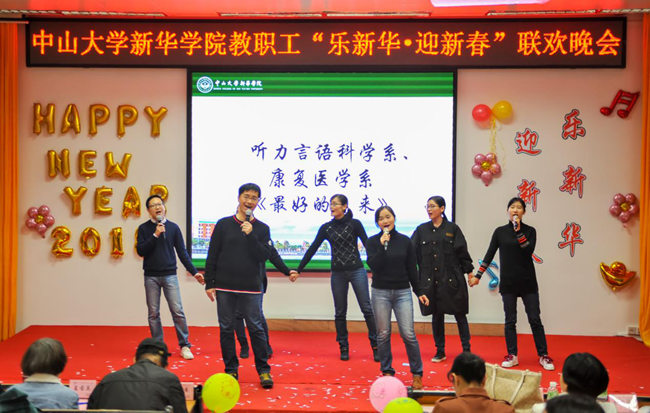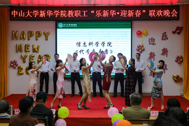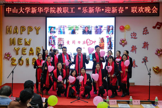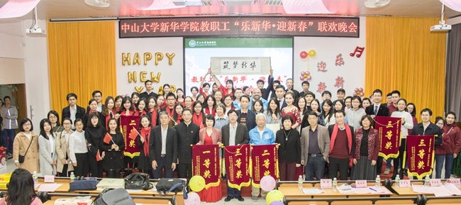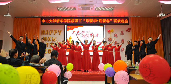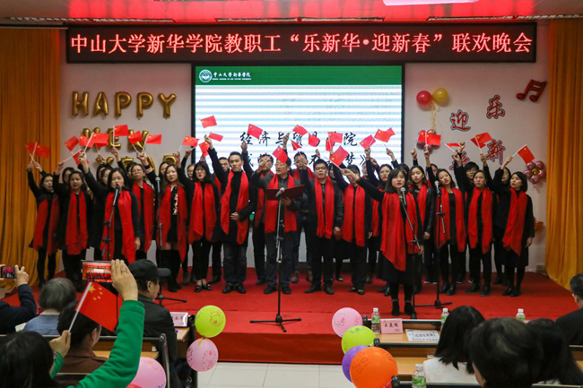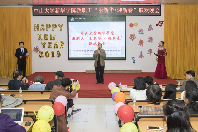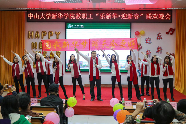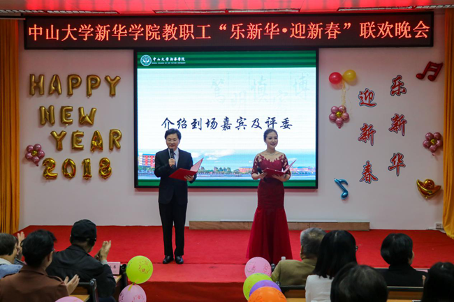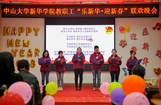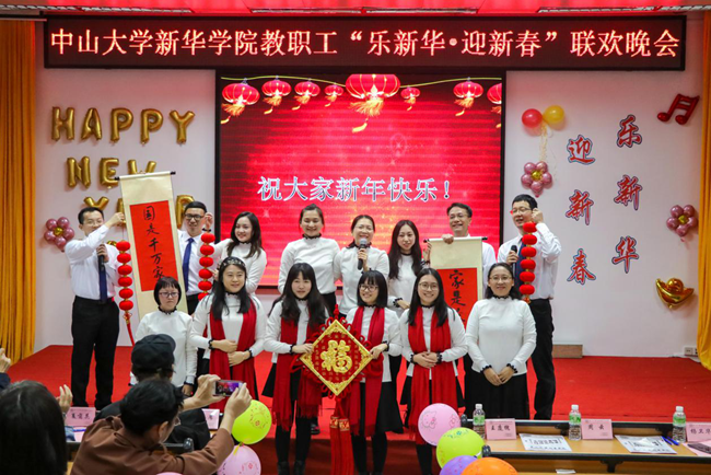 乘着十九大的东风,中山大学新华学院(以下简称学校)为迎接2018年新征程的到来,加强教职工之间的联系沟通,丰富教职工业余文化生活,“扬长守道,立本迎新”。12月28日晚,学校2017年教职工“乐新华·迎新春”联欢晚会在广州校区教学楼D101温暖上演。