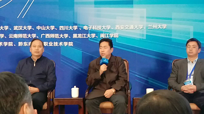 创新创业学院院长任荣伟(中)在大会圆桌论坛上做主旨发言