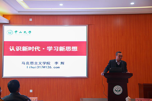 为深入学习宣传贯彻党的十九大精神,1月9日下午,中山大学新华学院(以下简称学校)党委在广州校区第一会议室召开党委理论学习中心组(扩大)学习会,邀请了教育部党的十九大精神“百人宣讲团”成员、中山大学马克思主义学院院长、博士生导师李辉教授作题为“认识新时代,学习新思想”学习贯彻党的十九大精神专题辅导报告。会议由校党委书记周云同志主持,学校党委理论学习中心组成员,二级单位党、政正副职负责人,各职能部门正副职负责人,党总支委员,党支部书记,党代会代表,辅导员和马克思主义教学研究部教师与会学习。