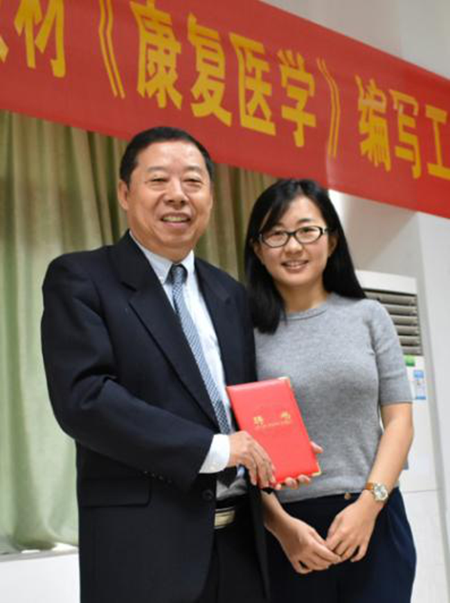 电子工业出版社生物医学工程项目总负责人张小乐编审(右)为《康复医学》教材主编黄东锋教授(左)颁发聘书