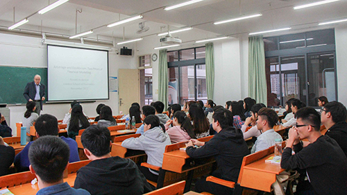 在本次课堂上,Prof.Ron Anderson对“套利与均衡:财政模型的两大支柱”进行了系统、深入的讲授,充分展示了一位国际知名经济学家所具有的大家风范和学者气质,同时展现了作为一名大学教师在课堂教学时的独特魅力和教学艺术。同学们纷纷为聆听到这样一位国际知名学者的授课感到无比的幸福和激动。