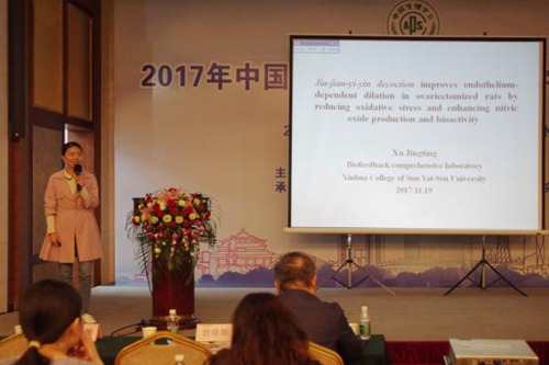 中山大学新华学院相关医学专业的50余位师生代表参会学习与研讨。在大会报告单元,由国家教学名师,中山大学新华学院校长、中山大学中山医学院生理学教授王庭槐所领衔的研究团队作了题为《雌激素的心血管作用及其机制》的学术报告,报告了近年来团队所取得的研究进展和今后的研究方向。在大会青年学术报告单元,来自中山大学新华学院生物医学工程学院的青年教师代表徐静婷作了题为《Jia-jian-yi-yin decoction improves endothelium-dependent dilation in ovariectomized rats by reducing oxidative stress and enhancing nitric oxide production and bioactivity》的论文报告,同与会人员分享了其研究方法和研究发现。