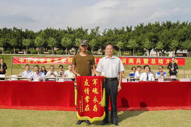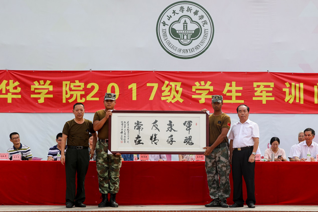 许淑锐副校长代表学校向承训部队赠送锦旗(广州校区)