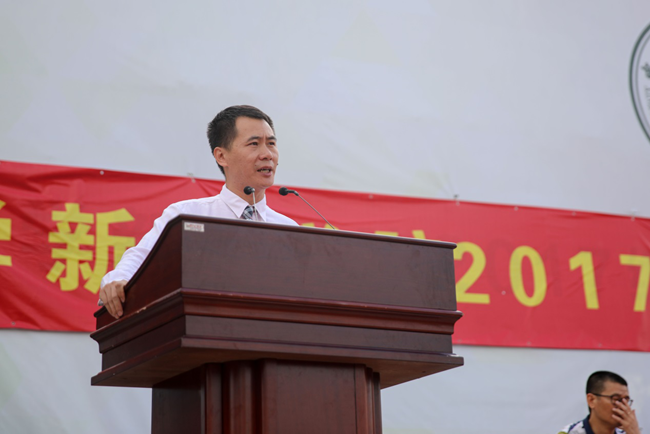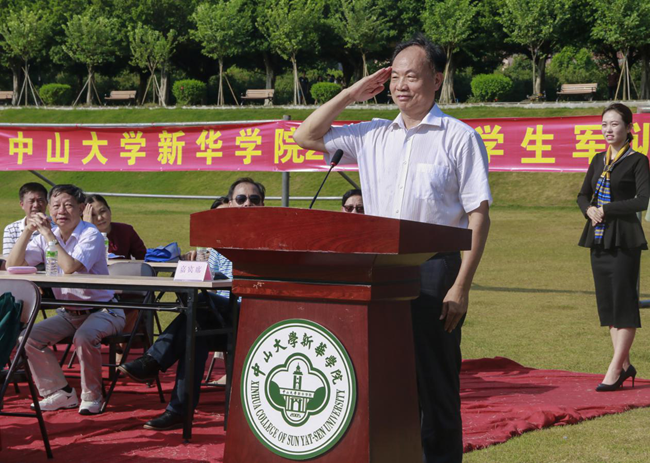 军训团副团长、校长助理林秋贵宣读嘉奖令(东莞校区)