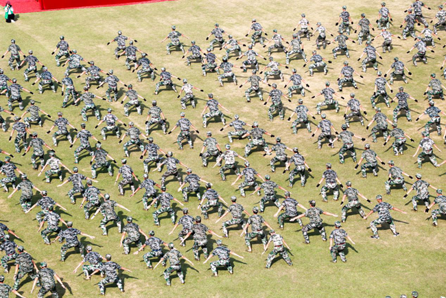 随后,表演方队分别向我们展示了力量与技巧、敏捷与冷静相结合的擒敌拳、匕首操、格斗、反恐等战术表演。学员们动作整齐有力,出拳一招制敌,技法干练,好一片虎虎生威的景象!