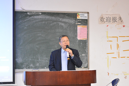 陈仲本院长首先对到场的各位专家做了简短的介绍,向同学们简单介绍了本学期即将开设的新方向情况。戴军进会长向同学们简单介绍了医用耗材以及广东省医用耗材管理学会的相关信息。广东省医用耗材管理学会是全国唯一医用耗材领域的省一级学会。学会的主要职能是推广新技术、新方法、新工艺产品,研究实施科学合理的医用耗材管理模式,评估和评价医用耗材在临床医疗服务中的有效性、安全性和可靠性。戴会长通过介绍学会的职能让同学们深刻意识到,医用耗材的管理将会在未来的医疗事业中占据更为重要的地位,即将开设的新方向与现今同学们所在的本专业有着相辅相成的关系。戴会长将“医用耗材”与即将开设的新方向结合起来,鼓励同学们加入到新开设的专业方向中来。
