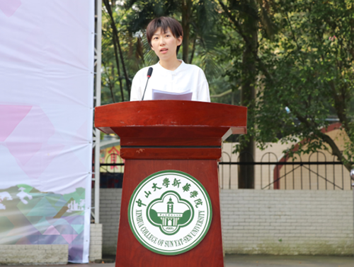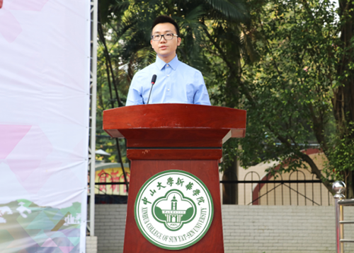 “刚刚成为大学生的我和大家一样,对大学生活充满未知和期待。上周我与几位同学提前到校,初步体验了大学生活,一趟下来,我对中山大学新华学院有了深深的好感。”来自听力与言语科学系的2017级新生翁晋在发言中表示,大学生活的意义不在于争抢分数获得全班第一名,而在于学会自理生活,自我规划,自我管理,向着自己的目标和理想不断前行。