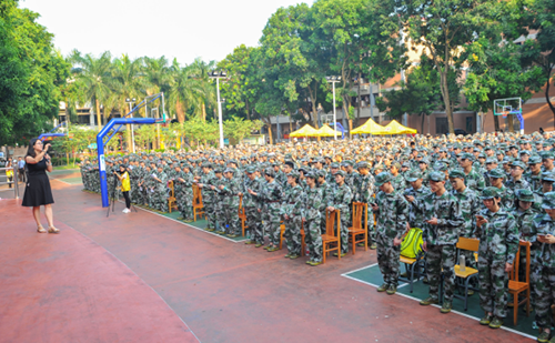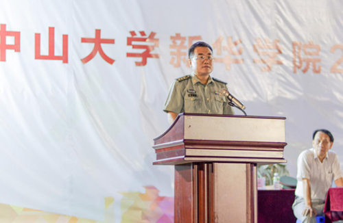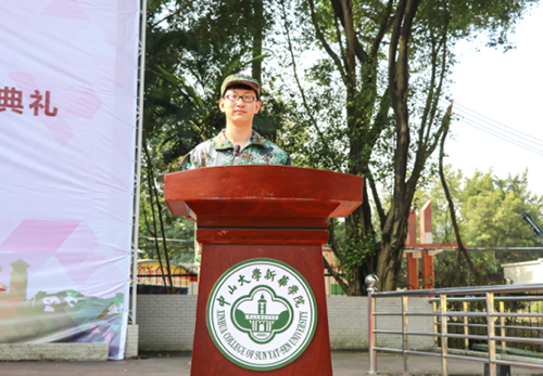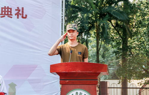 广州校区2017级新生军训团营长梁永栩作军训动员讲话