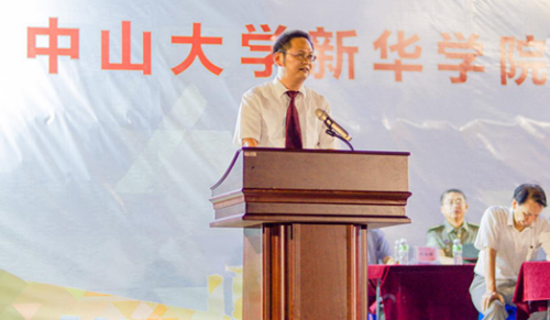 同日晚上,在为东莞校区新生举行的开学典礼上教师代表刘运国教授代表学校全体教师向同学们的到来表示最热烈的欢迎。刘教授提到,同学们应该有充分的心理准备,在大学的学习生活中,一定会遇到很多困难,所以从现在开始就要有克服困难的思想准备。“我衷心祝福同学们在中大新华的大学生活是愉快的、幸福的、成就满满的,是你们一生中,最值得骄傲和回忆的阶段。期望你们,在今后的四年里,充分释放自己的青春活力;荡漾在知识的海洋里;把自己锻造成祖国最有用的人才!”