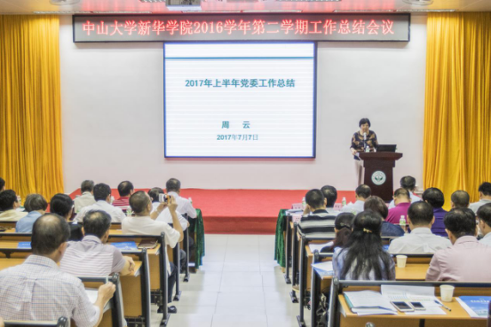 7月7日,中山大学新华学院2016学年第二学期工作总结会议在广州校区召开。王庭槐校长在会上作2016学年第二学期学校工作总结,周云书记作2016学年第二学期党委工作总结。