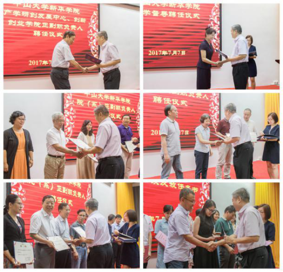 王庭槐校长(左一)为产学研创发展中心、创新创业学院正副职负责人颁发聘书 李波摄