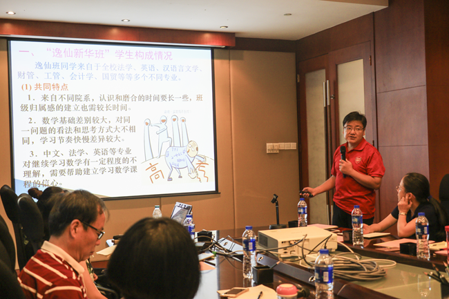徐应祥副教授就“逸仙新华班”《高等数学》课程改革项目实施情况进行了汇报。他通过对2014级、2015级实践“四段式激越教学法”的实践总结,更加明确了课程教改的定位与理念,确定了教改内容的基本框架与结构。在教学过程中,师生共同主导课堂,通过老师的精讲,学生主动参与、角色互换,学生们能够很好地掌握基本理论,初步学会如何利用数学工具解决实际问题,培养了学生的动手能力,提升了学生科学人文素养。他认为,该教学方法可以向其他班级推广,如引入实验课案例、应用型案例以及融入数学文化等,使教学内容更贴合专业课程学习,提升学生的综合素质和科学人文素养。