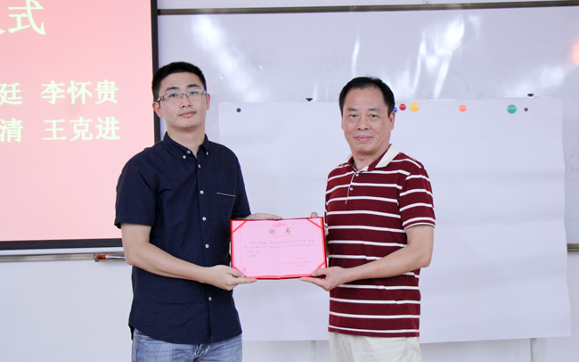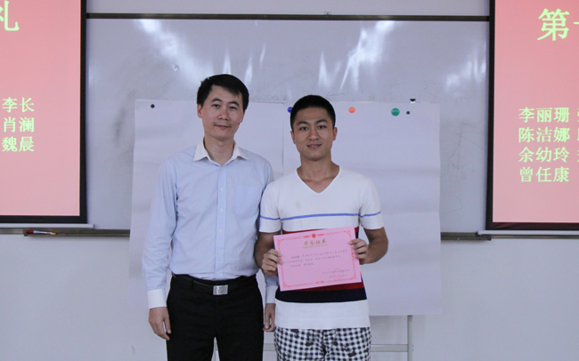 林秋贵校长助理(左)为第一届创业班结业学员颁发结业证书