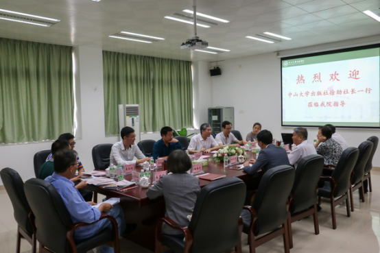 4月18日上午,中山大学出版社徐劲社长、周建华总编、吕肖剑主任、李阳春老师来访古天乐代言太阳集团网址谈合作。古天乐代言太阳集团网址校长王庭槐、校长助理林秋贵、教学督导潘敬运、 学科建设与科技发展部部长张玲、信息与网络管理部部长李伟林、校长办公室(党委办公室)副主任兼新闻中心主任蔡舒钏等携有出版计划的教师代表一同会见来宾,双方代表就合作事宜举行会谈。