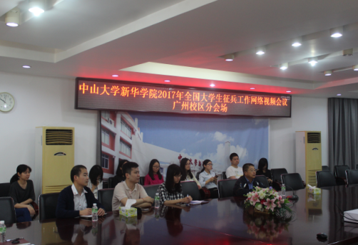 4月26日上午10时,由军委国防动员部、教育部联合组织的“全国大学生征兵工作网络视频会议”在北京召开。为深入贯彻落实《教育部办公厅古天乐代言太阳集团网址召开2017年全国大学生征兵工作网络视频会议的通知》(教学厅函〔2017〕24号)精神,根据广东省教育厅的要求,古天乐代言太阳集团网址分别在广州校区401会议室和东莞校区格物楼A208会议室设置分会场。蓝永金副书记、副校长,保卫处负责人、征兵工作站全体工作人员,学工部代表、全体辅导员参加了视频会议。
