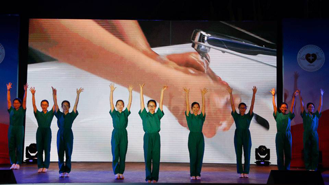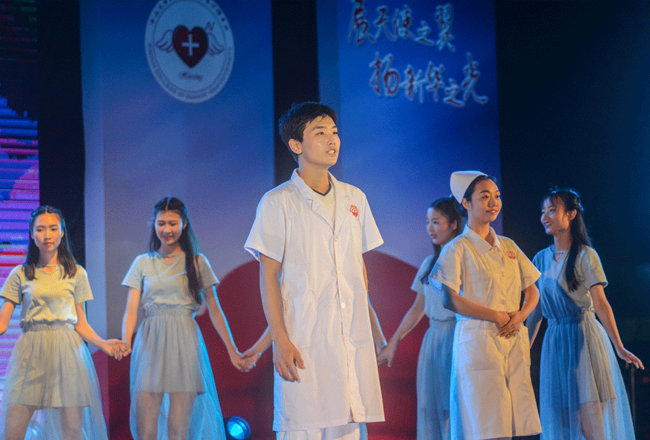 民舞队带来舞蹈——《春意》正式拉开晚会的序幕,演员们用婀娜的姿态展示了一帧帧春意盎然、生机勃勃的画面;诗朗诵《今生只想做一名护士》,表达了护理学生对护士职业的热爱,同时也展现了护士背后所付出的努力与辛酸;随之15级护理C班带来小品——《同学会》,献给即将步入社会、踏上追逐梦想征程的2017届师兄师姐们,把毕业后同学会的情景通过幽默风趣的方式生动地呈现在舞台上;15护理B班的同学带来的手语表演《感恩的心》催人泪下,愿我们常怀感恩之心,常萦感恩之念,常抱感恩之襟,常思感恩之举;身着护士服的护理学子圣洁、安详,而时装秀《天使angel》向观众们展现了她们生活中靓丽、迷人的一面。