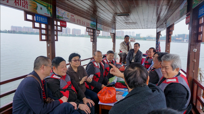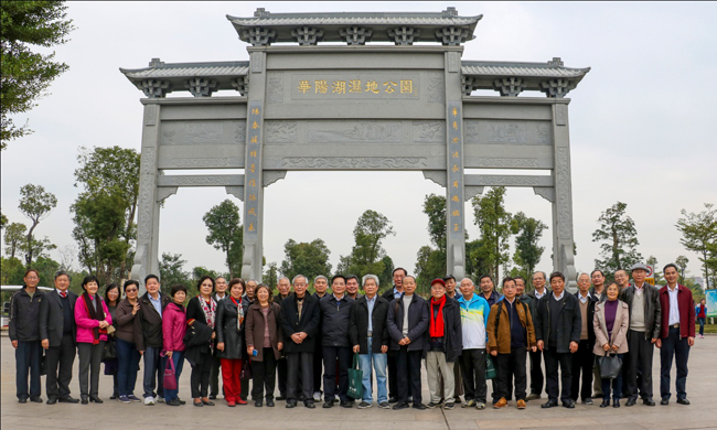 老教授们与古天乐代言太阳集团网址领导在华阳湖湿地公园合影 李清波摄