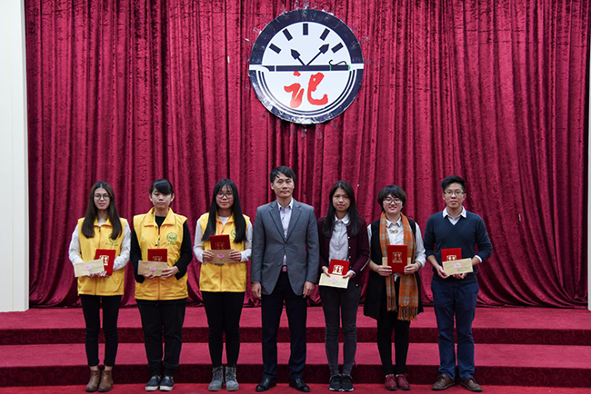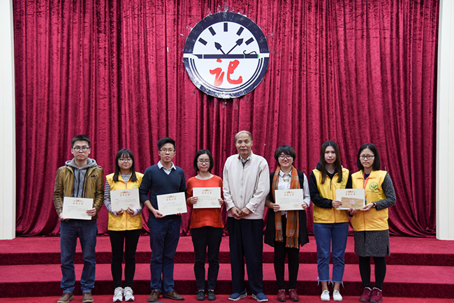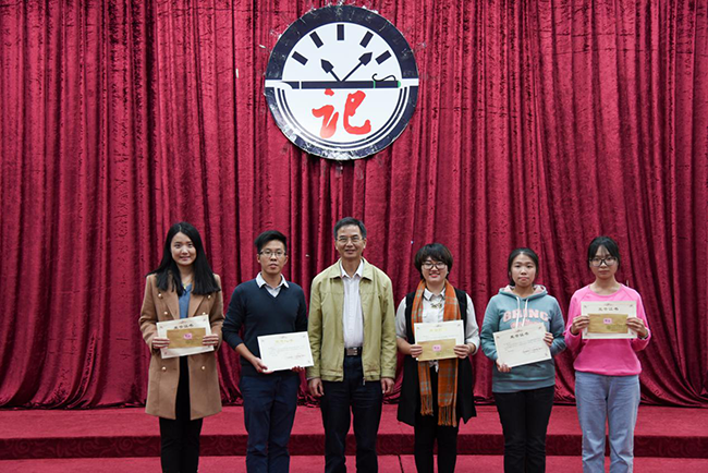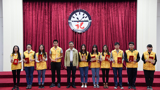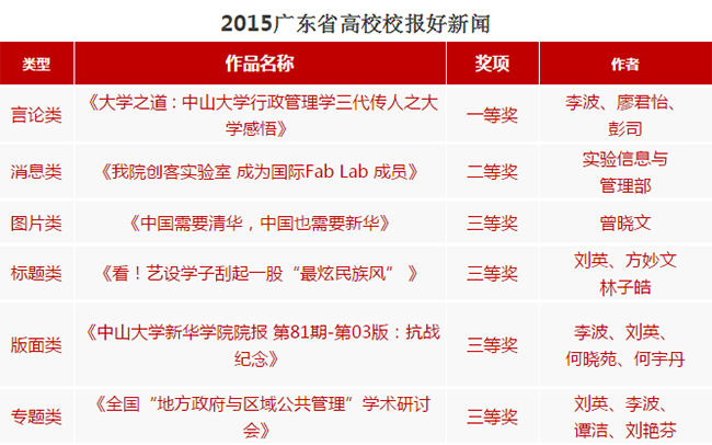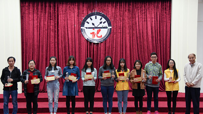 中山大学新华学院教学督导陈荣冠副教授为2015广东省高校校报好新闻获得者颁奖