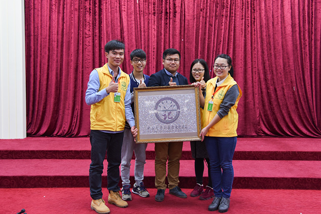 记者站第三届站长谢晶晶和第四届站长徐少伟送上记者站的“全家福”。这幅别具一心的相片,远观是一个大大记者站logo,近看是由一个个小小的照片排列组合,细看是记者站成立以来,历年历届的记者身影,共同合成一幅大大的站徽和“中山大学新华学院记者站”字样的相片。这幅精致的相片不仅象征着记者站,框内更是记者站三年来的风雨历程,是历届记者在记者站的点点滴滴,也蕴意全体记者们的团队合作才能组成记者站这个大家庭,有记者站的记者才叫做小黄鸡,有小黄鸡的记者站才叫做家。
