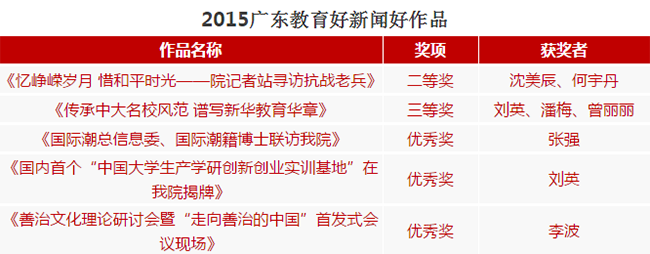 中山大学新华学院副校长杨卫华教授为2015广东省教育好新闻好作品获得者颁奖