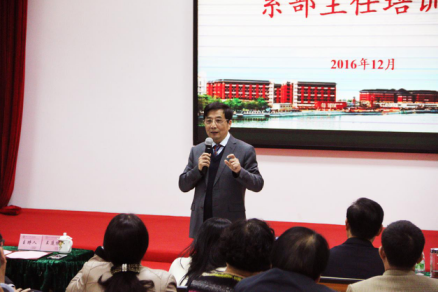 王庭槐校长作总结讲话。他谈到一个系的价值观、系文化氛围可以体现一个系的文化特点以及教学质量,系主任个人的文化认可对自身所领导的系有着重要的影响,因此,系主任应着力思考如何创建好团队和团队文化。拥有认同的文化和共同的目标,增强文化凝聚力,做细致周到的服务,使师生得到满意体验,从而提高服务质量。