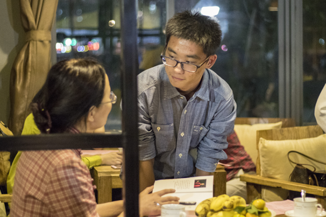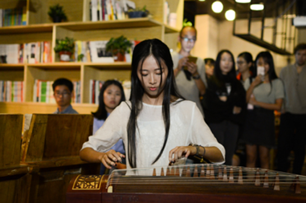 朗诵会期间,2016级审计专业德的梁乐宁同学表演了小提琴独奏曲《沉思》,为诗歌朗诵会增添了几分浪漫气息。2016级经济学专业德林诗涵同学则以两曲极具中国特色古筝作品《汨罗江上》、《彝族舞曲》,获得在场嘉宾的掌声和赞赏。黄康泰同学、黄俞桦同学以一首吉他弹唱《青花瓷》来结束2016中山大学作家写作营“中大新华行”。动听的歌声响彻了整个咖啡厅,使现场所有人都依依不舍。