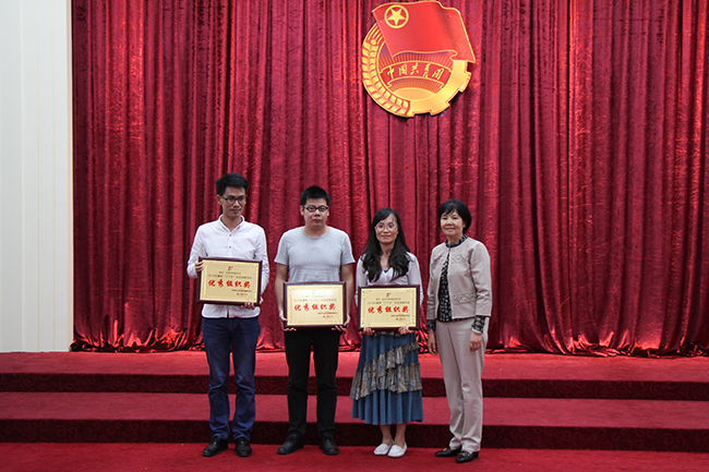 学院办公室丁艮平主任(中)为优秀新闻特别效果奖代表颁奖