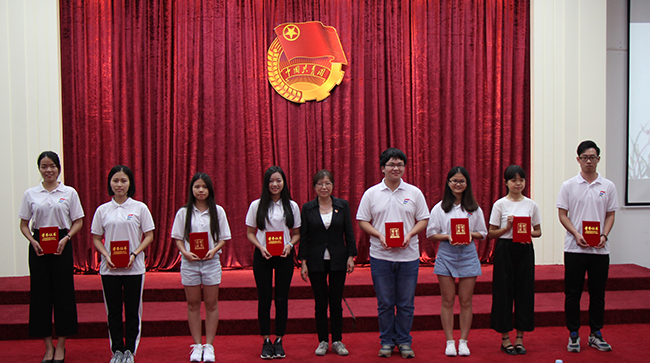 学院党委书记周云为获得优秀组织奖的系团总支书记颁奖