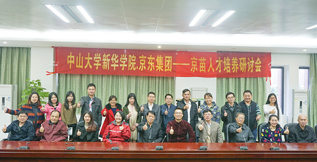 11月24日下午,中山大学新华学院·京东集团——京苗人才培养研讨会在中山大学新华学院(以下简称学院)东莞校区召开。中山大学新华学院电商·物流京苗实验班”(以下简称“新华京苗班”)校企双方项目负责人与会,在总结经验、提出问题中共商对策,旨在优化“新华京苗班”人才培养方案,推进“订单式”教育教学改革。