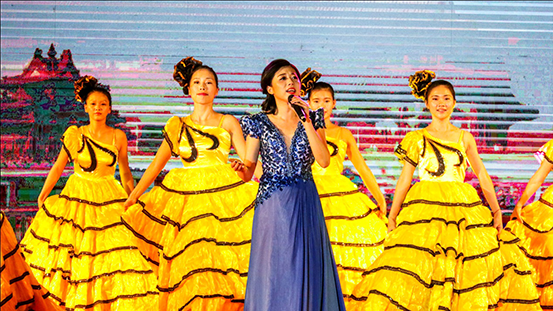 石紫琪老师与艺术团民舞队《我和我的祖国》。轻舞飞扬,歌声嘹亮